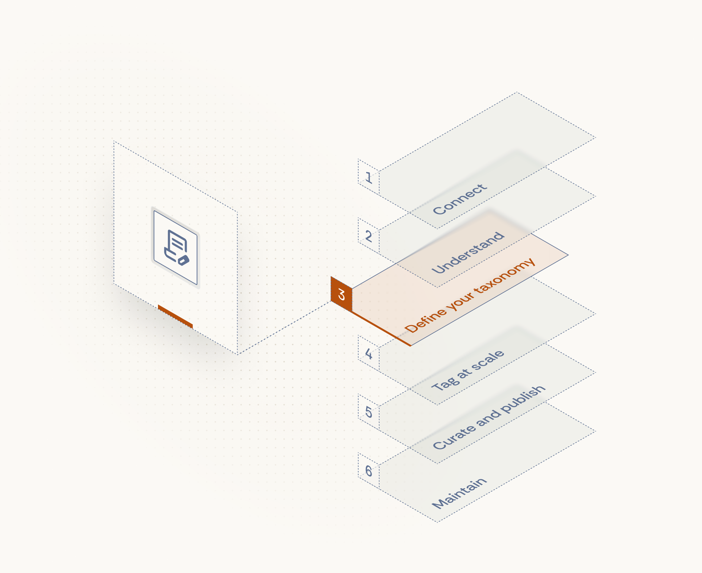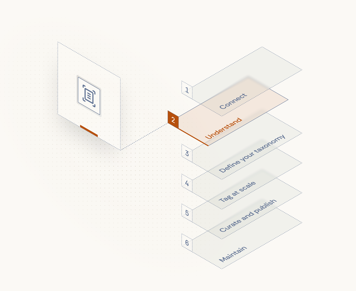 Applies the taxonomy across all content to create a structured, filterable database view of your unstructured data.